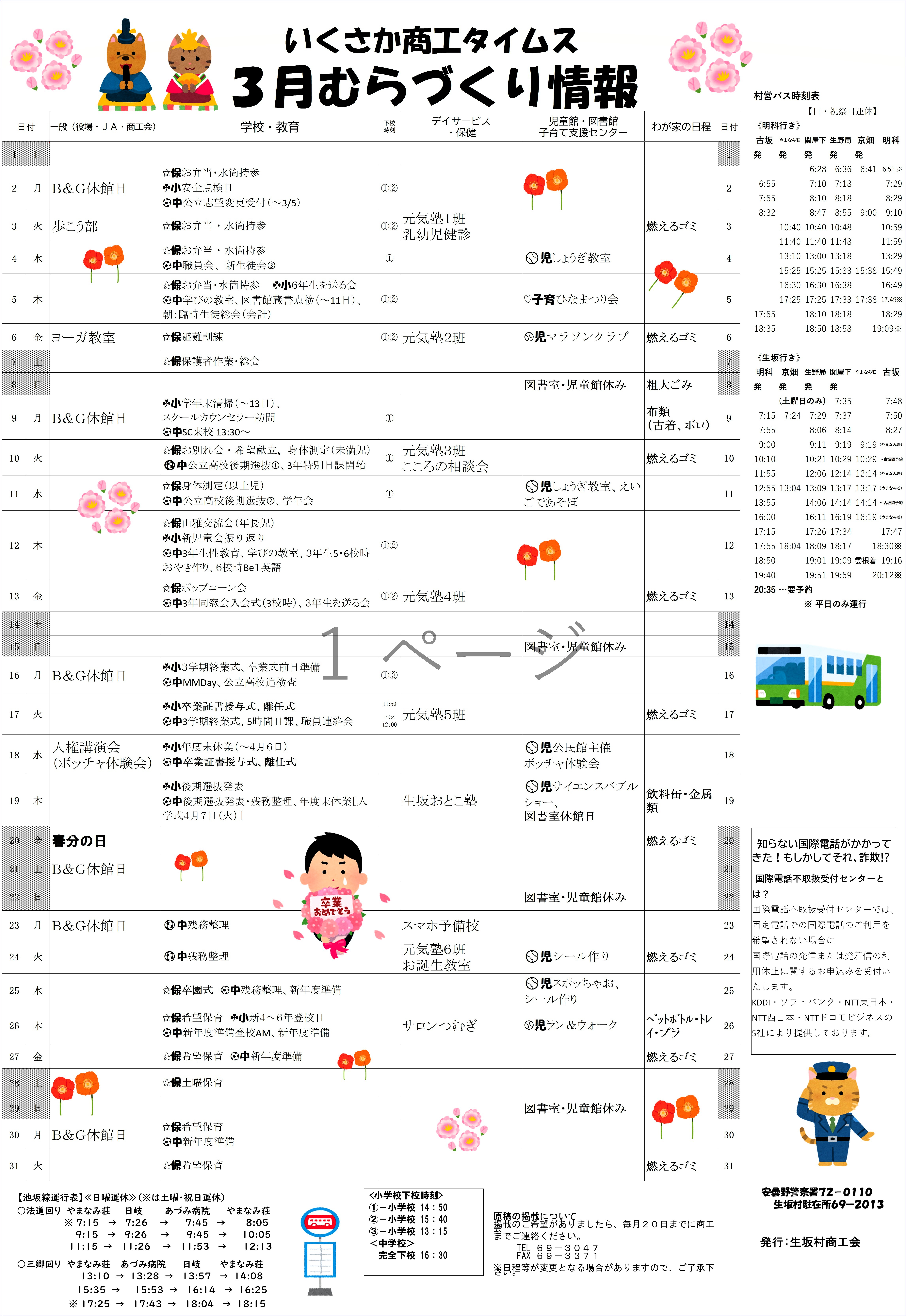 | 明 科 | 行 き | 生 坂 | 行 き | |||||||||