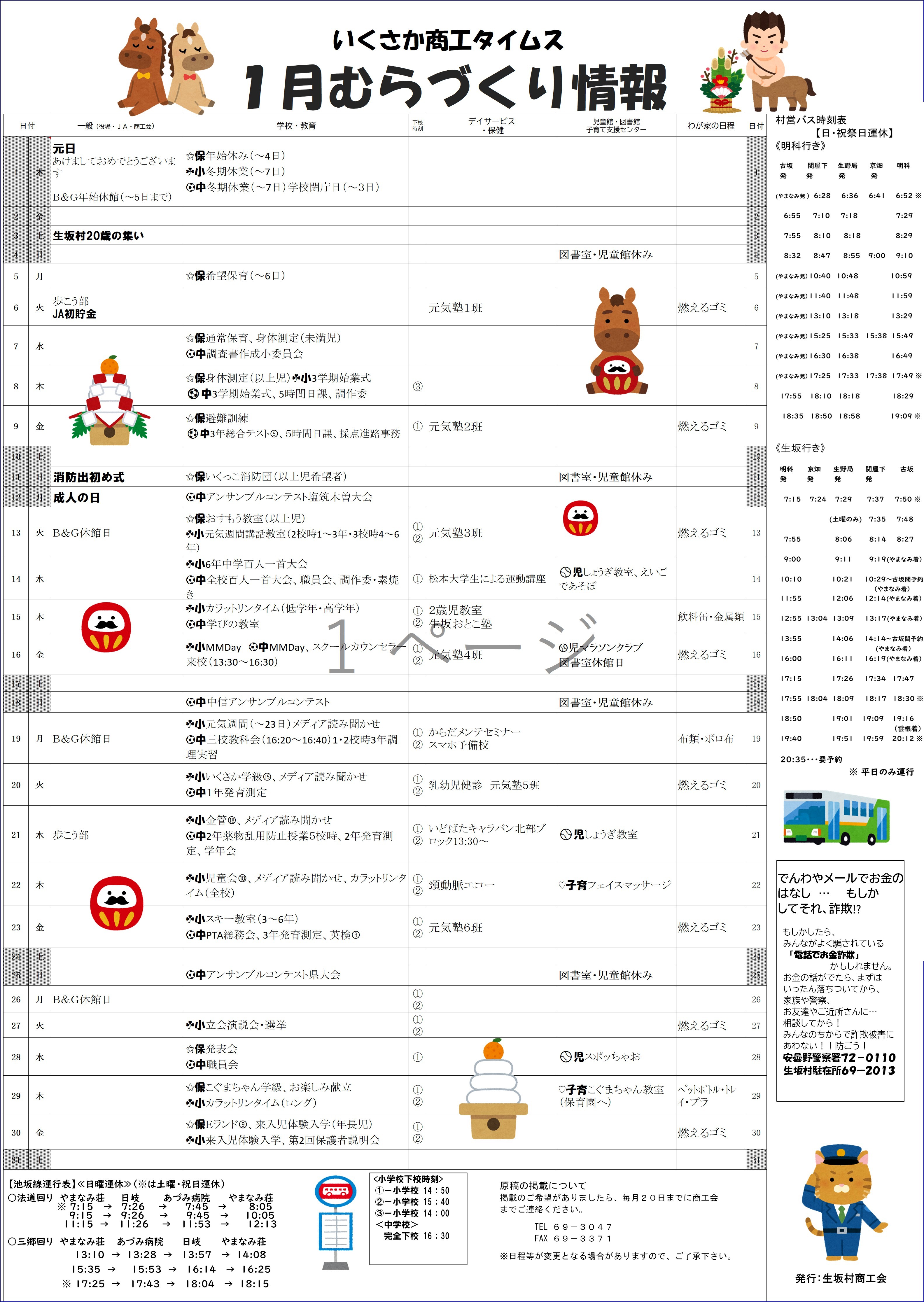 | 明 科 | 行 き | 生 坂 | 行 き | |||||||||